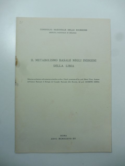 In 8 (cm 17 x 24), pp. 6. Aloni al margine interno dovuti ad ossidazione dei punti metallici. Brossura editoriale. Estratto editoriale da La ricerca scientifica.