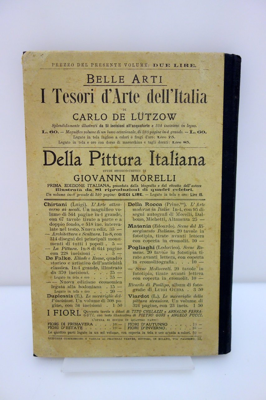 Treves, Milano, 1907; cm 23x15,5; pp. 100, con 19 fig. in b/n nel t. e a piena pagina. Mezza tela ed. con titolo al piatto ant. Al frontespizio timbretto - ex libris del precedente proprietario (ex raccolta privata).