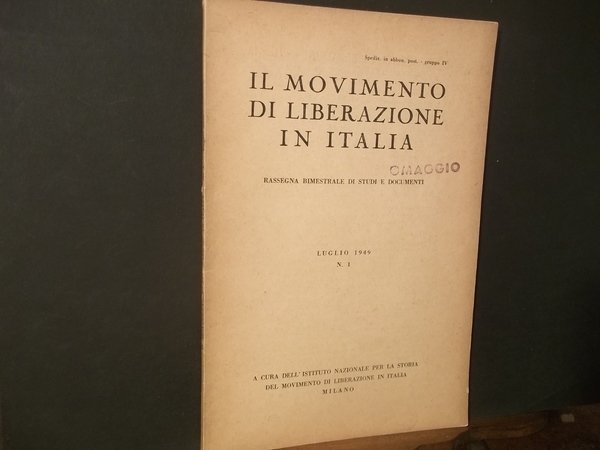 A CURA DEL MOVIMENTO NAZIONALE PER LA STORIA DEL MOVIMENTO DI LIBERAZIONE IN ITALIA- LUGLIO 1949 N. 1 - BROSSURA 24 X 16 PP. 63 BUONE CONDIZIONI, INGIALLIMENTO FISIOLOGICO, TIMBRO AL PIATTO.