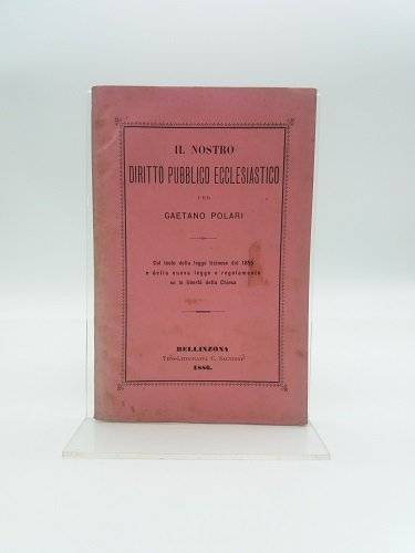 In 16 (cm 13 x 20), pp. 105 + (3). Brossura editoriale. Applicato alla prima carta bianca un foglio ripiegato con lettera manoscritta autografa di Polari. Pubblicazione con il testo della nuova legge ticinese del 1855 e della nuova lege e regolamento sulla liberta' della Chiesa.