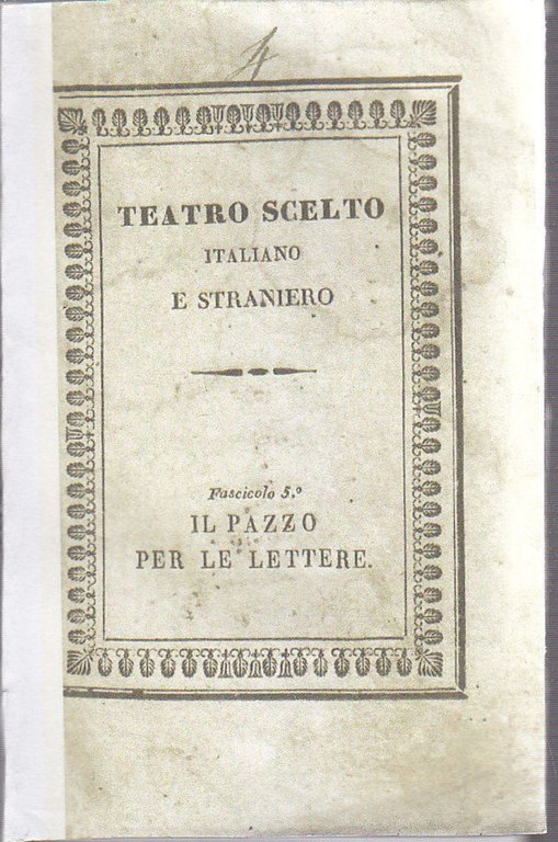 IL PAZZO PER LE LETTERE di Filippo Ciarli 1832 Nobile libro antico teatro