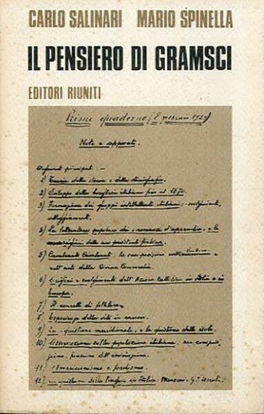 3. ed. 421 p. ; 19 x 12 cm. Universale, 86. Questa antologia "scolastica" degli scritti di Antonio Gramsci si propone di far conoscere agli studenti italiani il pensiero di uno dei maggiori intellettuali che il nostro paese abbia espresso nel Novecento. In Gramsci, infatti, l'impegno politico, che pur costituì la passione predominante nella sua vita, si accompagnò sempre ad un profondo interesse per la cultura, ad una eccezionale capacità di ricerca e di elaborazione, alla convinzione che una trasformazione rivoluzionaria della società richiedeva, per essere veramente tale, anche una «riforma - come egli scrisse - intellettuale e morale». Brossura editoriale, coperta illustrata in cartoncino flessibile, titolo impresso al piatto e al dorso. Qualche lieve segno del tempo (ingiallimento della carta), per il resto libro integro. Codice libreria 6629.