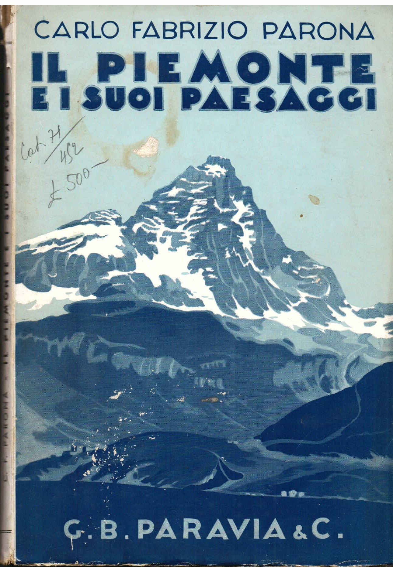 In-8° (24x16cm) in brossura editoriale figurata con titoli al dorso e al piatto anteriore. Pp VIII, (1) bianca, 172, 72 figure bianco e nero nel testo (anche a piena pagina) e una cartina (fuori testo) dei Massicci delle Alpi Occidentali dell'Ing. Prof. V. Novarese. Lievi segni del tempo e d'uso alla brossura, etichetta di antica catalogazione (al verso del foglio di guardia anteriore), interno fresco. Più che buon esemplare. Importante studio dedicato alla geomorfologia piemontese. Analisi geologica delle Alpi e della loro evoluzione, le colline di Torino, Asti e Rivoli, la pianura e sue origini alluvionali, cenni sui terreni sedimentari marini che concorrono alla formazione delle Alpi piemontesi, terreni del bacino terziario piemontese, orogenesi delle Alpi, quaternario, epoca glaciale, comparsa dell'uomo in Piemonte. Ricco apparato iconografico e utile bibliografia sulla geologia piemontese.