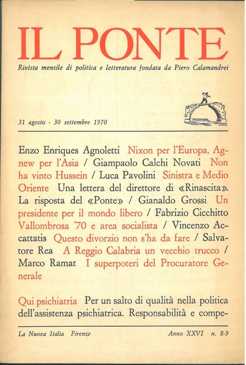 Il Ponte. Rivista mensile di politica e letteratura. Anno XXVI, N° 8-9. Agosto - Settembre.