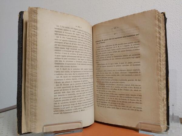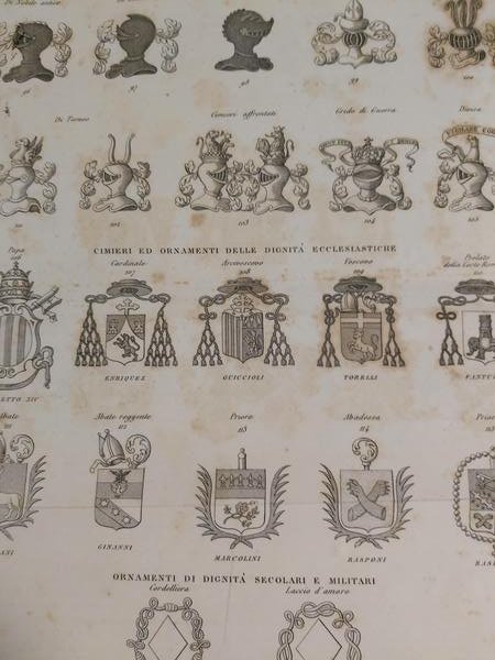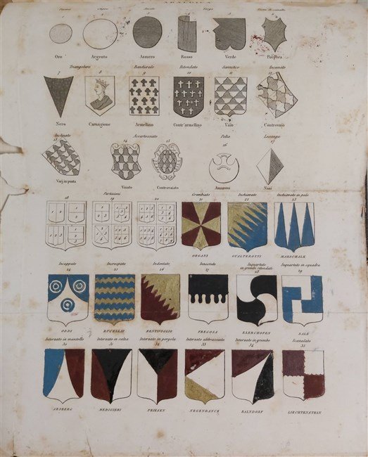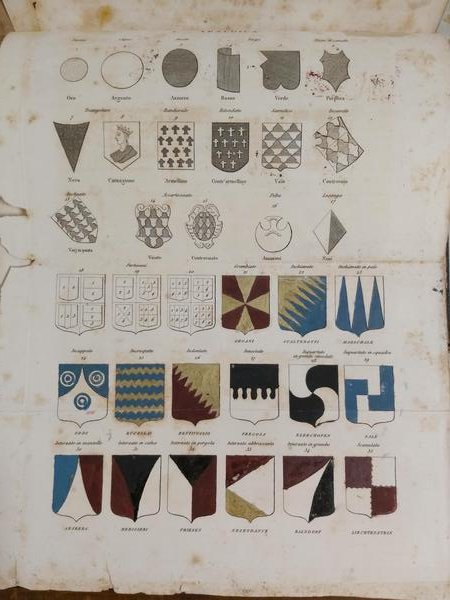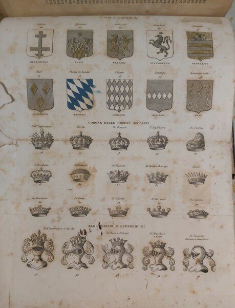 in-4, pp. 430, leg. m. pelle coeva con tit. oro al d. Con 3 tavv. ripiegate al fine raffiguranti stemmi araldici colorati. Importante testo che tra l’altro contiene l’elenco delle famiglie nobili suddiviso per regione e città. Spreti 1627. [228]