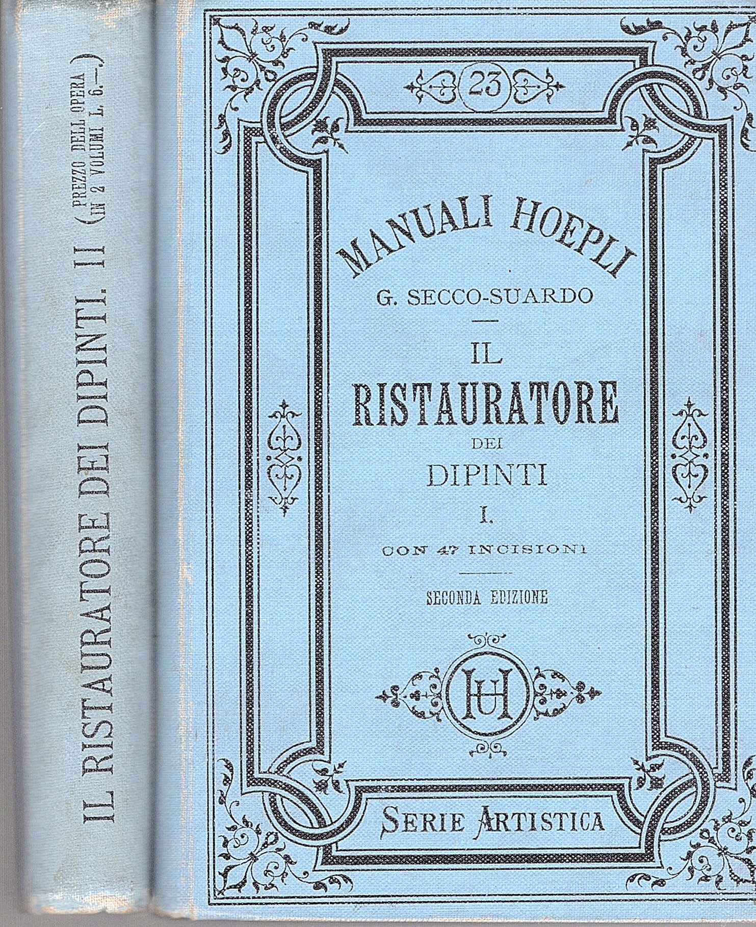 Due volumi in-16° (15.5x11 cm), elegante legatura editoriale tutta tela cerata azzura con titoli ai dorsi e ai paitti entro cornici con fregi fitomorfi, tagli rossi. Pp XVI, 259, (3) & 29, (3) Catalogo di elenco di Manuali Hoepli; XII, 362. Pecetta di libreria antiquaria dell'epoca ai contropiatti. Più che buoni esemplari. Seconda edizione postuma di questo classico e fortunato manuale tecnico-pratico. L'orobico autore, il conte Secco-Suardo, aveva lasciato i manoscritti delle sue opre alla biblioteca civica di Bergamo tra cui il secondo volume del manuale ivi pubblicato. Cfr. Assirelli, p. 133.