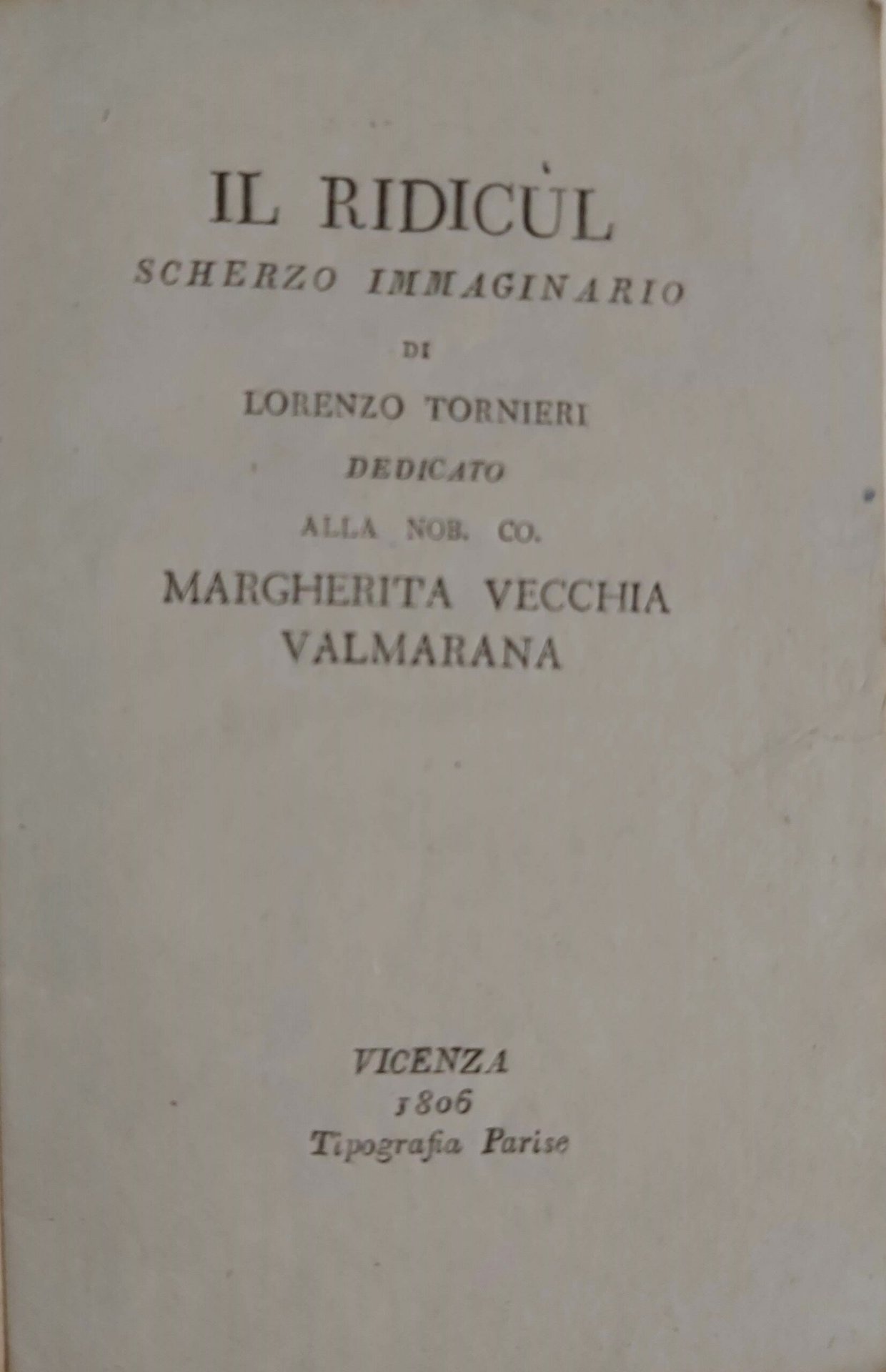 in-16, pp. 16, leg. carta color. coeva. Stampato su carta azzurra. Nota manoscritta al verso dell’ultima copertina “dono dell’Autore”. Rumor III, 226.34. [257]