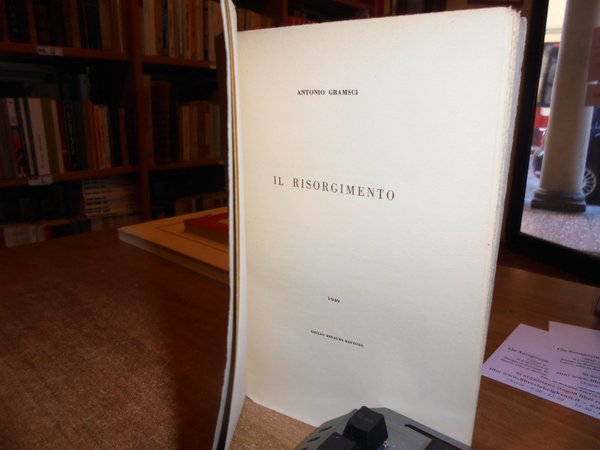 Opere di Antonio Gramsci. IL RISORGIMENTO. Torino, Einaudi, 1949. In-8°, br. orig. xiv, 235 pp. Ben conservato. Uff. stanz. TV mob nostro a destra carc.