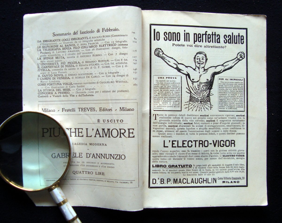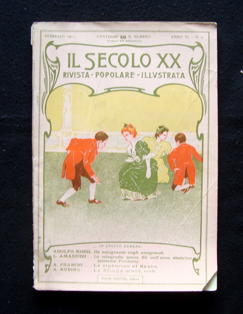 Mensile, Il secolo XX" Rivista Popolare Illustrata Anno VI - N. 2 Febbraio 1907 La Sfinge muta S.A.Fratelli Treves Ed, Milano, 1907, cm. 25x17, pag. da 91 a 176 + da 9) a 17)+V -VII, numerose ill. in b/n nel. t. e fuori. t., alcune inserzioni pubblicitarie d'epoca in b/n in apertura di testo; brossura ed. Copertina ill.a colori. Numero completo e compatto. Condizioni di conservazione Esemplare in buone condizioni con tracce d'uso; brossura editoriale con piccoli strappetti ai margini e tracce di piega all'angolo; dorso con piccoli strappetti e piccola mancanza. "La Sfinge muta" pp 7 con 7 illustrazioni fotografiche in bianco e nero RVS001N00535 blu "