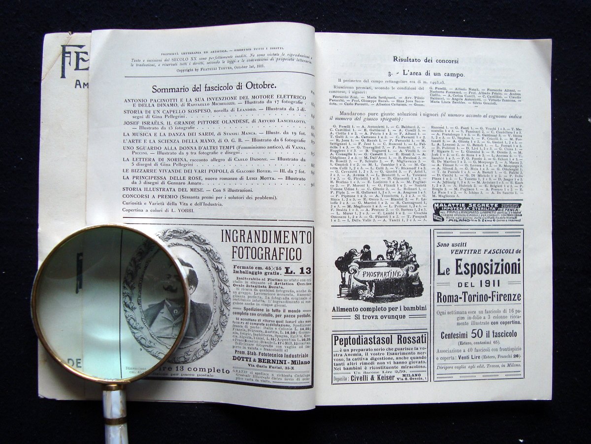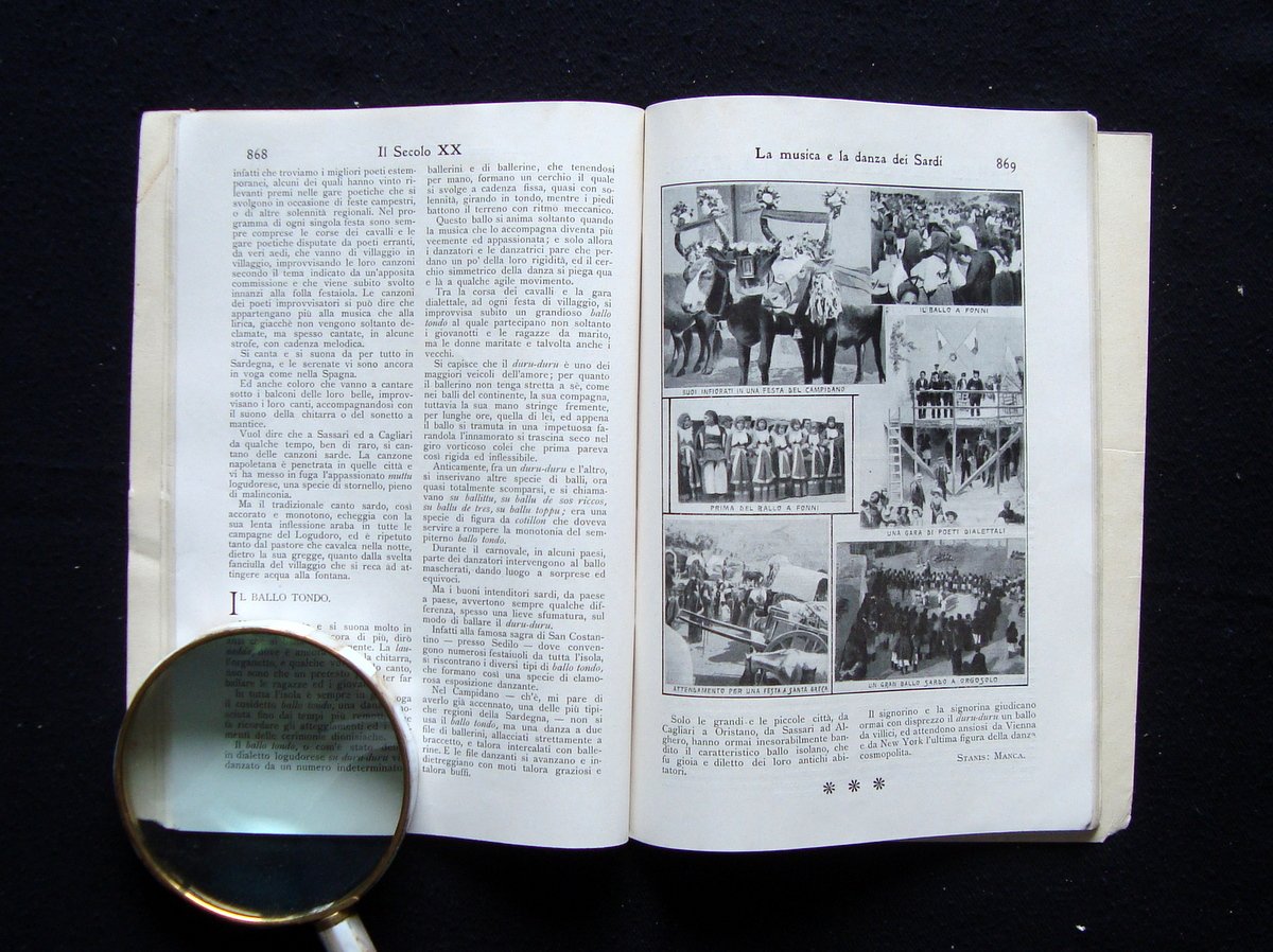 Mensile, Il secolo XX" Rivista Popolare Illustrata Anno X - N. 10 Ottobre 1911 La Musica e la Danza dei Sardi S.A.Fratelli Treves Ed, Milano, 1911, cm. 25x17, pag. da 835 a pag 920+ da 73) a 80)+ XXXVII-XL numerose ill. in b/n nel. t. e fuori. t., alcune inserzioni pubblicitarie d'epoca in b/n in apertura di testo; brossura ed. Copertina ill.a colori. Numero completo. Condizioni di conservazione Esemplare in buone condizioni con tracce d'uso e del tempo; angolo sup br. ant con piega; br. post con piccoli strappetti; copertina con accenno di parziale distacco dal dorso.; dorso con abrasioni e piccole mancanze. "La Musica e la Danza dei Sardi" pp 6 con 19 illustrazioni fotografiche in bianco e nero RVS001N00552 blu "