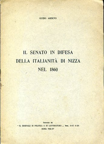 Il Senato in difesa della italianità di Nizza. Estratto da 'Il Giornale di Politica e di Letteratura', fasc. 11 - 12