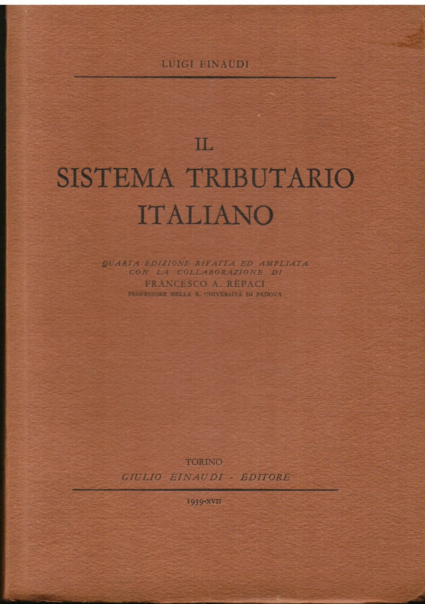 Il sistema tributario italiano. Quarta edizione rifatta ed ampliata con la collaborazione di Francesco A. Rèpaci professore nella R. Università di Padova