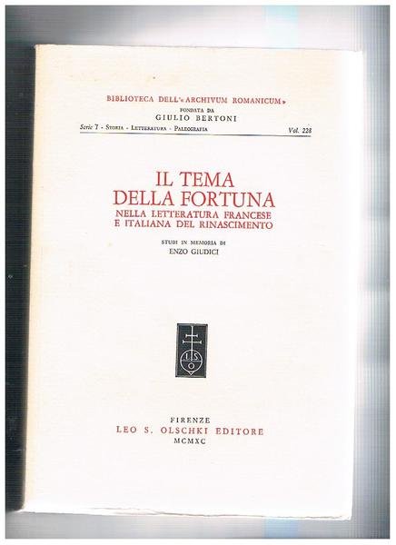 Il tema della fortuna nella letteratura francese e italiana del rinascimento. Studi in memoria di Enzo Giudici.