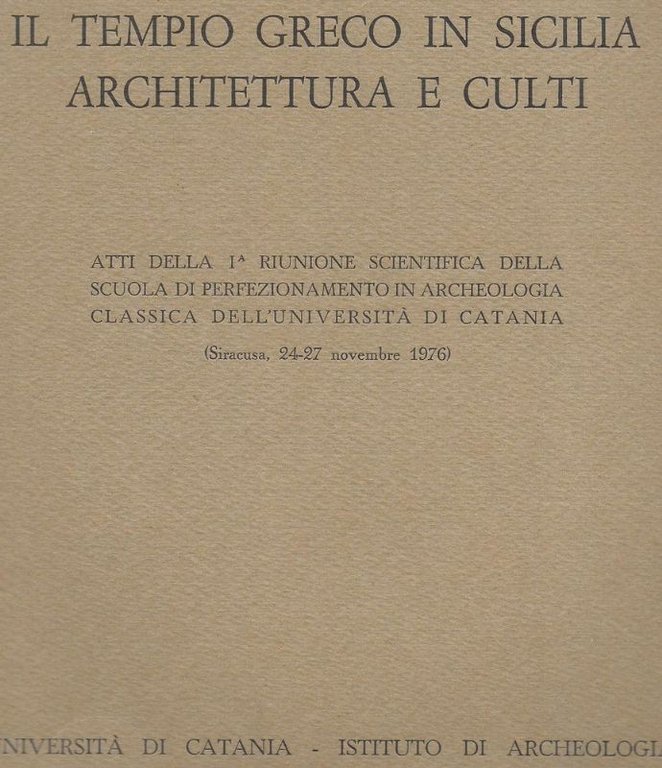 Il Tempio Greco in Sicilia, Architettura e Culti. Atti della I° Riunione Scientifica della scuola di perfezionamento in archeologia classica dell'Univ. di Catania. Siracusa Nov. 1976.