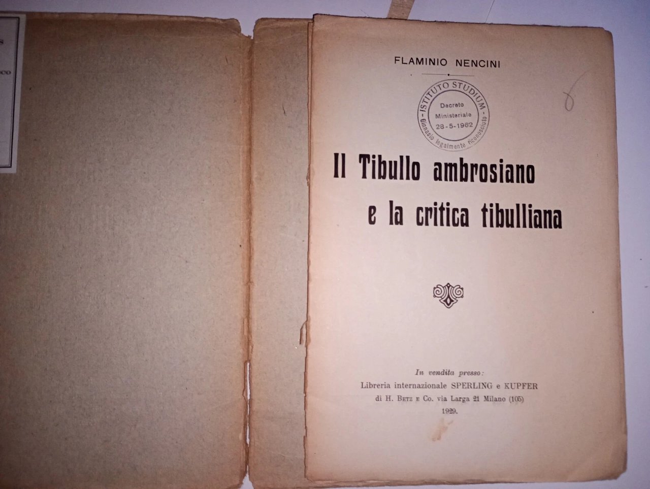 FLAMINIO NENCINI, il tibullo ambrosiano e la critica tibulliana - 1929