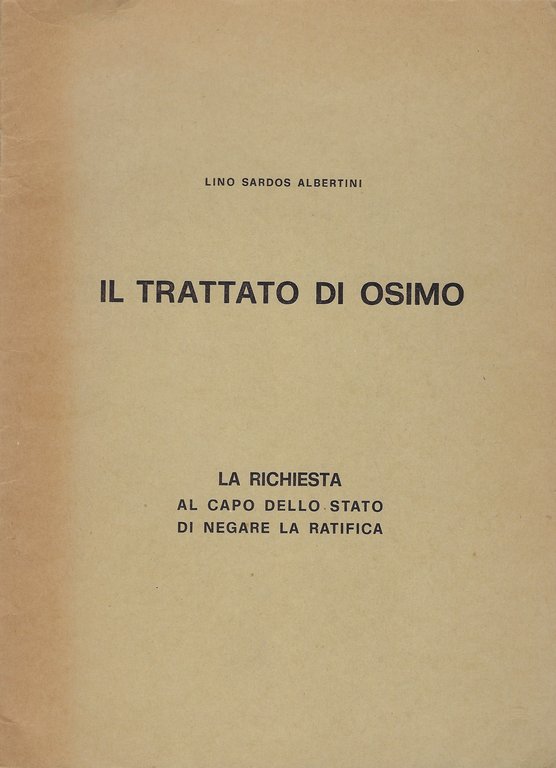 Il trattato di Osimo: la richieste al Capo dello Stato di negare la ratifica
