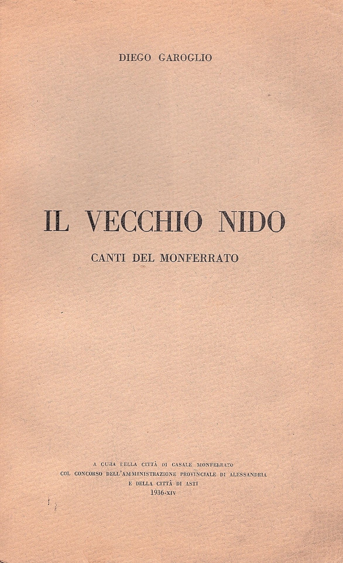 In-8° (23x15 cm), pp. VIII,198, brossura editoriale con titoli in nero al dorso e al piatto anteriore. Un ritratto dell'Autore (1866-1933) all'antiporta. Non comune edizione originale delle liriche in gran parte dedicate dal poeta all' avita casa paterna. Prefazione dell' avvocato Giovanni T. Caire Podestà di Casale.