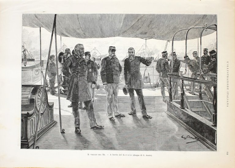 Il viaggio del Re a bordo del Savoia. Stampa 1889