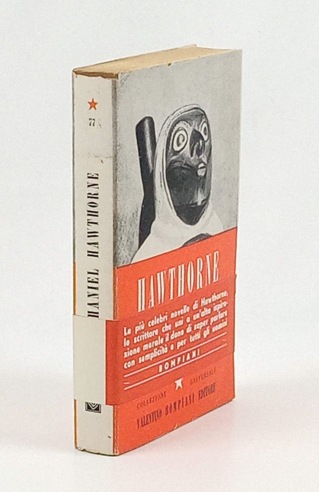 LIBROPrima edizione italiana.Ottimo esemplare, fresco, pulito e squadrato, integro anche alla sovracoperta e completo della rarissima fascetta editoriale con strillo «Le più celebri novelle di Hawthorne, lo scrittore che unì a un’alta ispirazione morale il dono di saper parlare con semplicità e per tutti gli uomini». Rarissimo in queste condizioni.Raccolta di otto racconti lunghi: Wakefield, Il velo nero del pastore, Il volto di pietra, Il tesoro di Peter Goldthwaite (tradotti da Montale), Il dolce fanciullo, I sette vagabondi, Il Gran Carbonchio, I ritratti profetici (tradotti da Luigi Berti). Cura e prefazione di Eugenio Montale.Barile, Bibliografia montaliana, n. E 9