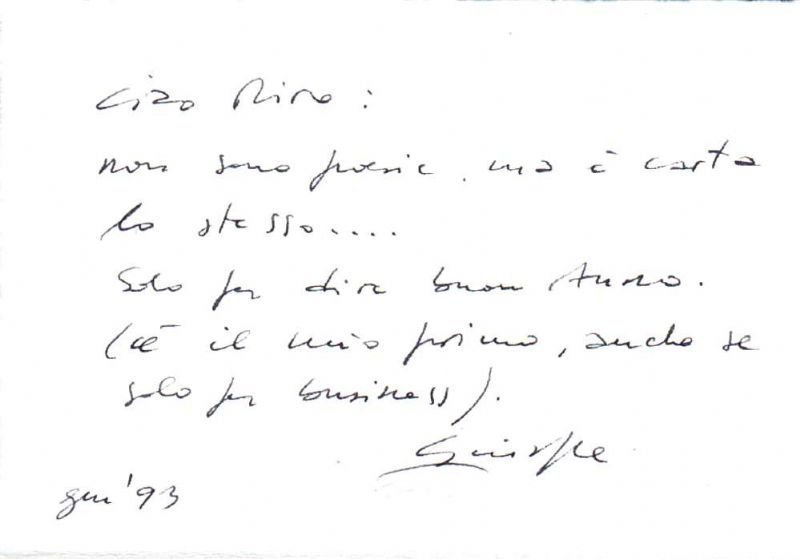 In-4°, legatura editoriale in cartonato, con sopracoperta; pp. 71(5). Al frontespizio invio autografo firmato dell'artista a Miro Silvera; si allega una lettera di presentazione, autografa e firmata anch'essa. Ritratti di capitani d'industria (Agnelli, Benetton, Gucci, Armani, Alessi, Stefanel, Beggio, Berlusconi, De Benedetti, F. A. Porsche, Burani, Missoni, Ferrè, Valentino, Missoni, e altri), e foto di campagne pubblicitarie. Giuseppe PINO (Milano, 1940 - Bellagio, 2022) è stato un fotografo italiano. Inizia a fotografare nel 1962, dopo aver frequentato a Milano la scuola di fotografia della Società Umanitaria. Nel 1967 inizia la collaborazione con la rivista Panorama, terminata nel 1974 per intraprendere la carriera di freelance. Nel 1973 si trasferisce a New York, dove documenta tra l'altro la scena musicale jazz, di cui è appassionato. Rientra in Italia alla fine degli anni Ottanta per dedicarsi alla pubblicità e alla moda.