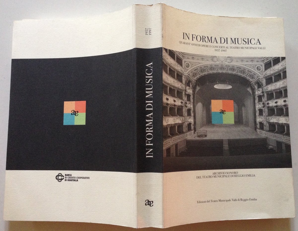 Archivio Sonoro del Teatro Municipale di Reggio Emilia, In forma di musica Quarant'anni di opere e concerti al Teatro Municipale Valli 1957-1997 Edizioni del Teatro Municipale Valli di Reggio Emilia, 1998; cm. 24x16,5; pp. 354; con ill. in b/n e a col. a piena pagina; brossura editoriale ill. a col. Condizioni di conservazione Volume in ottime condizioni di conservazione. SETT84.L18085 MT