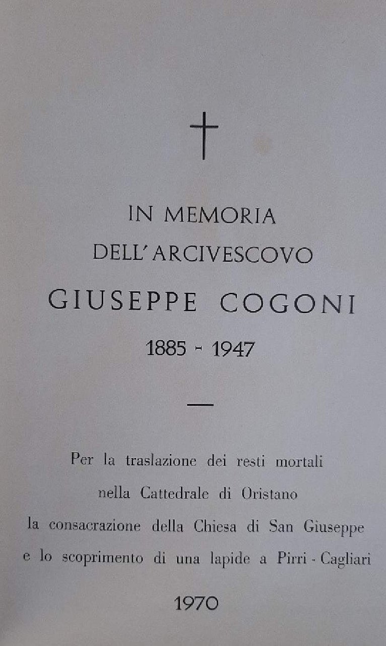 IN MEMORIA DELL'ARCIVESCOVO GIUSEPPE COGONI-1885-1947( 1970)