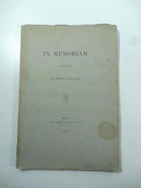 In 8 (cm 16,5 x 24), pp. 58 + (2b). Fioriture sparse alle pagine. Piatto anteriore originale in brossura (piccola macchietta), piatto posteriore rifatto con carta d'epoca.