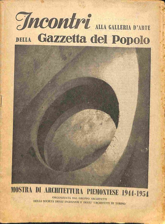 In 8 (cm 21 x 28), pp. 46 con riproduzioni fotografiche in bianco/nero nel testo. Brossura editoriale. Supplemento della Gazzetta del Popolo interamente dedicato alla Mostra di architettura piemontese svoltasi nel 1954 presso la Galleria d'Arte della Gazzetta del Popolo. Testo introduttivo di Gino Levi Montalcini dal titolo "Per una citta' migliore. I regolamenti come norma, non come costrizione". Seguono, per ogni pagina, piccole fotografie in bianco/nero di edifici e architetture varie con i nomi degli architetti che parteciparono alla mostra. Fra gli architetti: Franco Albini, Ottorino Aloisio, Carlo Mollino, Eugenio Mollino, Roberto Gabetti, Mario Roggero, Albino Arnaudo, Belgioioso, Peressuti, Rogers, Nicola Diulgheroff, Ignazio Gardella, Gino Levi Montalcini, Pier Luigi Nervi, Annibale Fiocchi e Marcello Nizzoli, Ettore Sottsass ed Ettore Sottsass Jr., e molti altri.