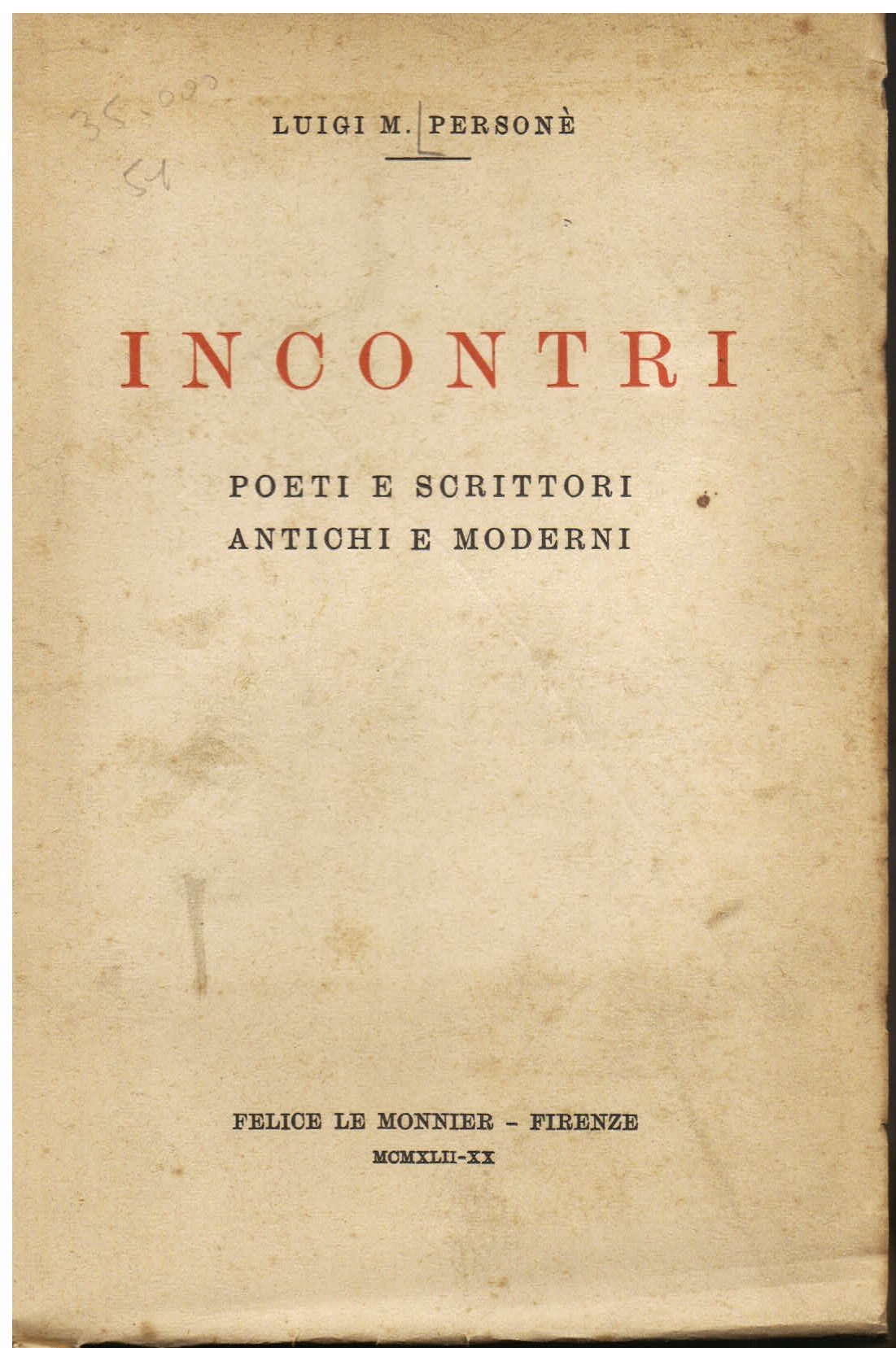 In-8°, pp. 256, brossura editoriale. Intonso. Prima edizione. Interventi su scrittori antichi e moderni, da Catullo sino a Papini.