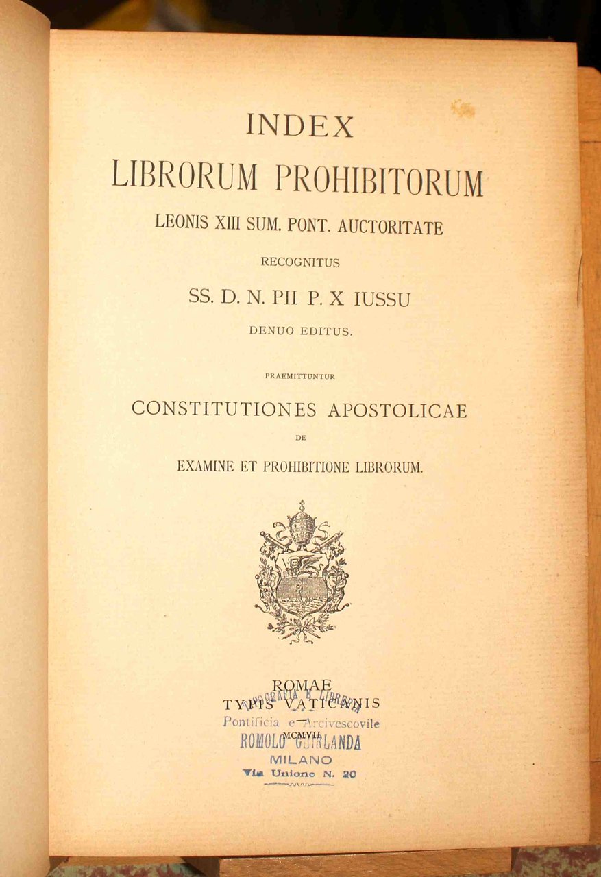 Index Librorum Prohibitorum Leonis XIII sum. Pont. Auctoritate recognitus. Praemittuntur constitutiones apostolicae de examine et prohibitione librorum