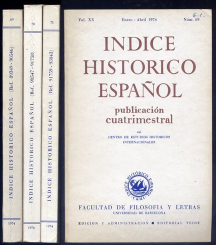 Índice Histórico Español. Publicación cuatrimestral. Director Manuel Riu. Volumen XX: 1974.
