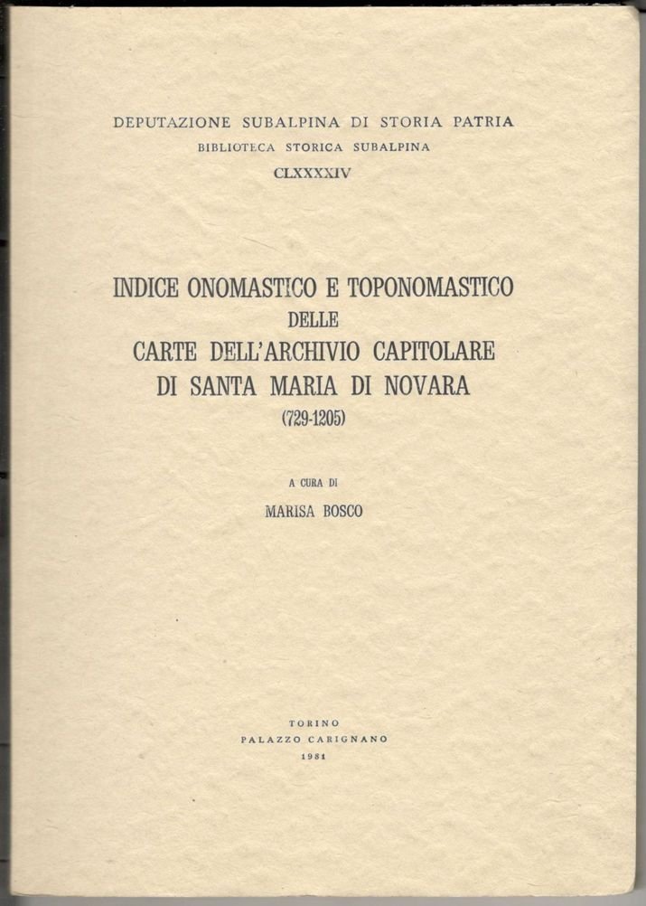 Indice onomastico e toponomastico delle carte dell’Archivio capitolare di S. Maria di Novara (729-1205)