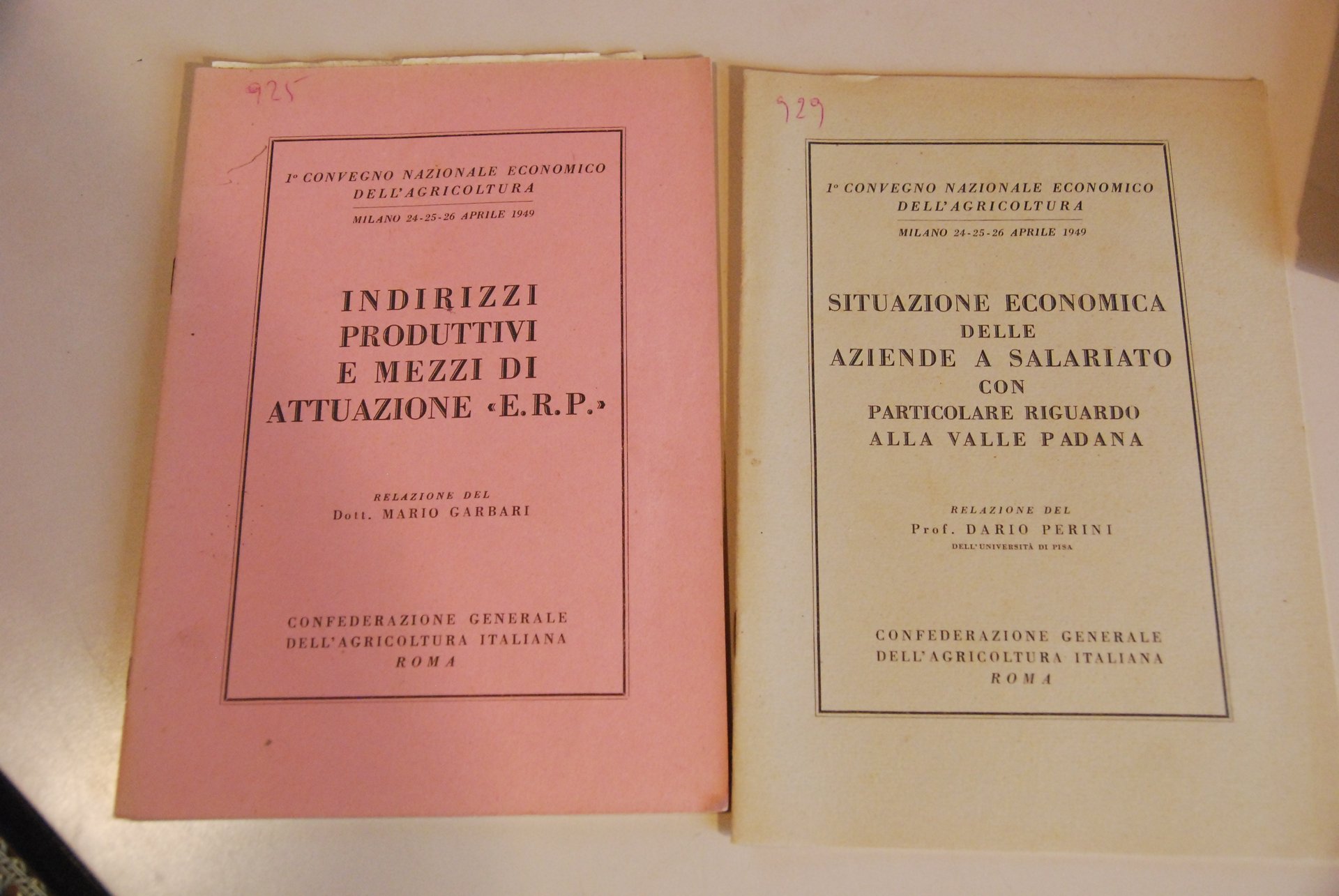 convegno nazionale economico dell'agricoltura indirizzi produttivi e mezzi di attuazione erp situazione economica delle aziende salariato. .
