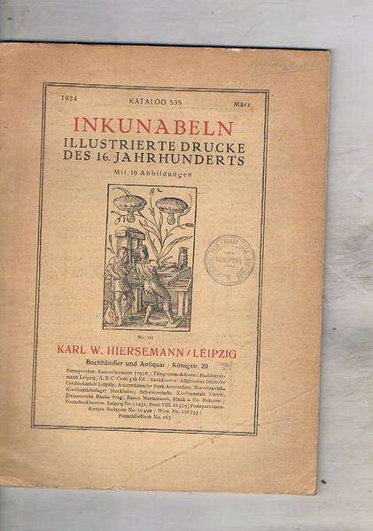 Inkunabeln illustrirte drucke des 16 jahrhunderrs mit 16 abbildungen. n° 535 del marzo 1924.