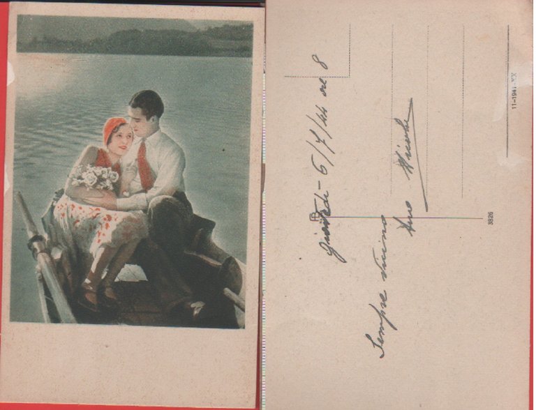 Innamorati su barca. Datata 1944
