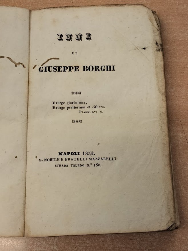In 24°, br. muta, pp. 120. Barbe. Ampi marg. Fioriture. Mende alla cop.