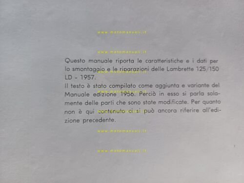 Innocenti Lambretta 150 ld -125 ld 1957 AGGIORNAMENTO manuale officina originale
