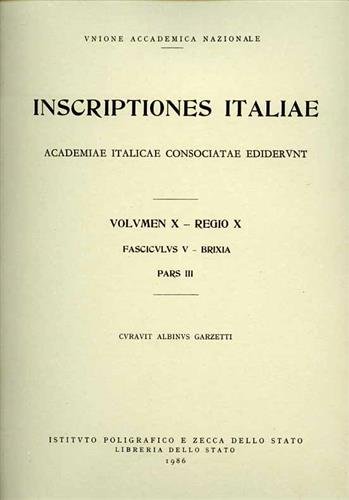 Inscriptiones Italiae. Vol.X, Regio X, fasciculus V, Brixia, parte III.