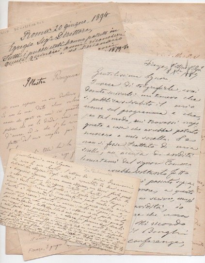 Insieme di 4 lettere, tre autografe firmate e una con sola firma autografa. Datate 1862-1894