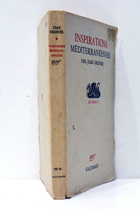 191 pages. 4 feuillets. (19x12cm). Broché. Couverture imprimée légèrement brunie et avec signes de mouillures et tacheséparses sans gravité. Dos et coins un peu émoussés avec petites déchirures marginales. Publié à Paris en 1940, cet ouvrage de Jean Grenier explore les nuances de la culture et du paysage méditerranéens à travers une série d'essais. Grenier, philosophe et mentor d'Albert Camus, offre une réflexion profonde sur la condition humaine, influencée par la richesse historique et la complexité culturelle de la région méditerranéenne. Pages légèrement brunies avec quelques petites taches éparses. Bien conservé.