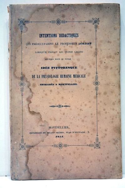 Intentions didactiques qui préoccupaient le professeur lorsqu'il faisait les quinze leçons réunies sous ce titre: Idée pittoresque de la physiologie humaine médicale enseignée à Montpellier.