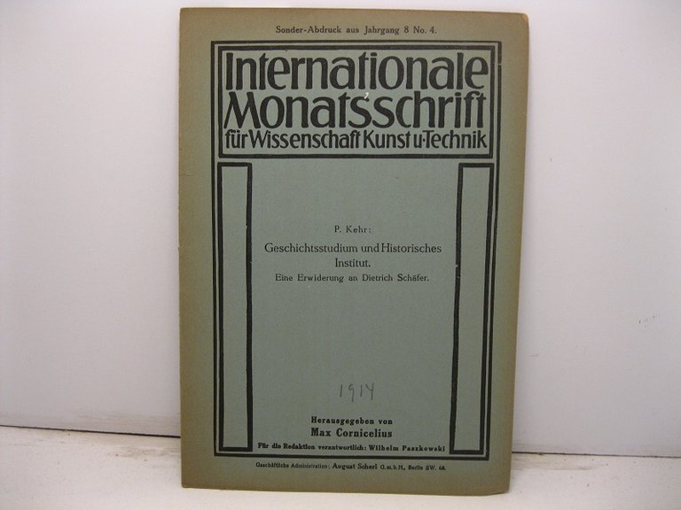 Internationale Monatsschrift fur Wissenschaft Kunst und Technik. Geschichtsstudium und Historisches Institut. Eine Erwiderung an Dietrich Schafer