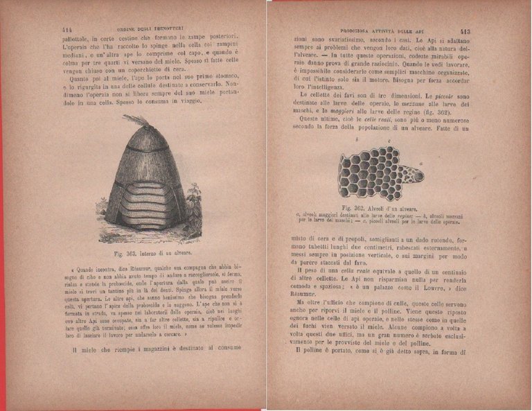 Interno di un alveare/Alveoli di un alveare. Vecchia stampa