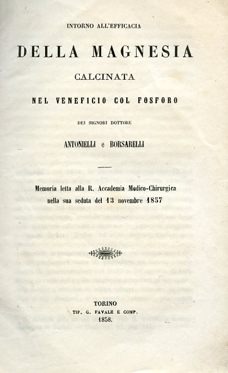 Intorno all'efficacia della magnesia calcinata nel veneficio col fosforo, Memoria letta alla R. Accademia Medico - Chirurgica nella sua seduta del 13 novembre 1857