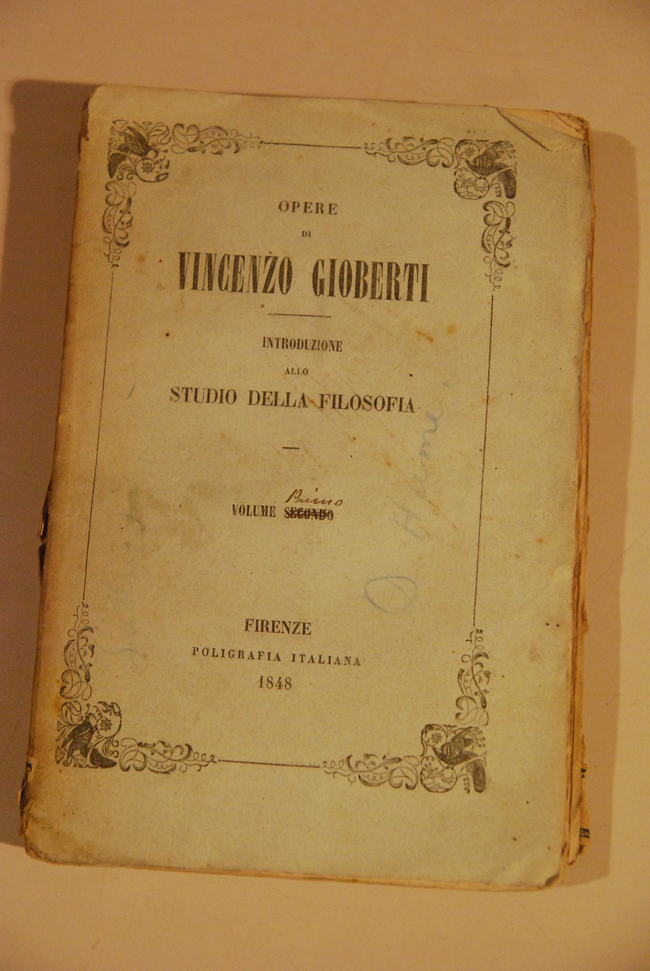 opere di vincenzo gioberti introduzione allo studio della filosofia volume. firenze 1848 .