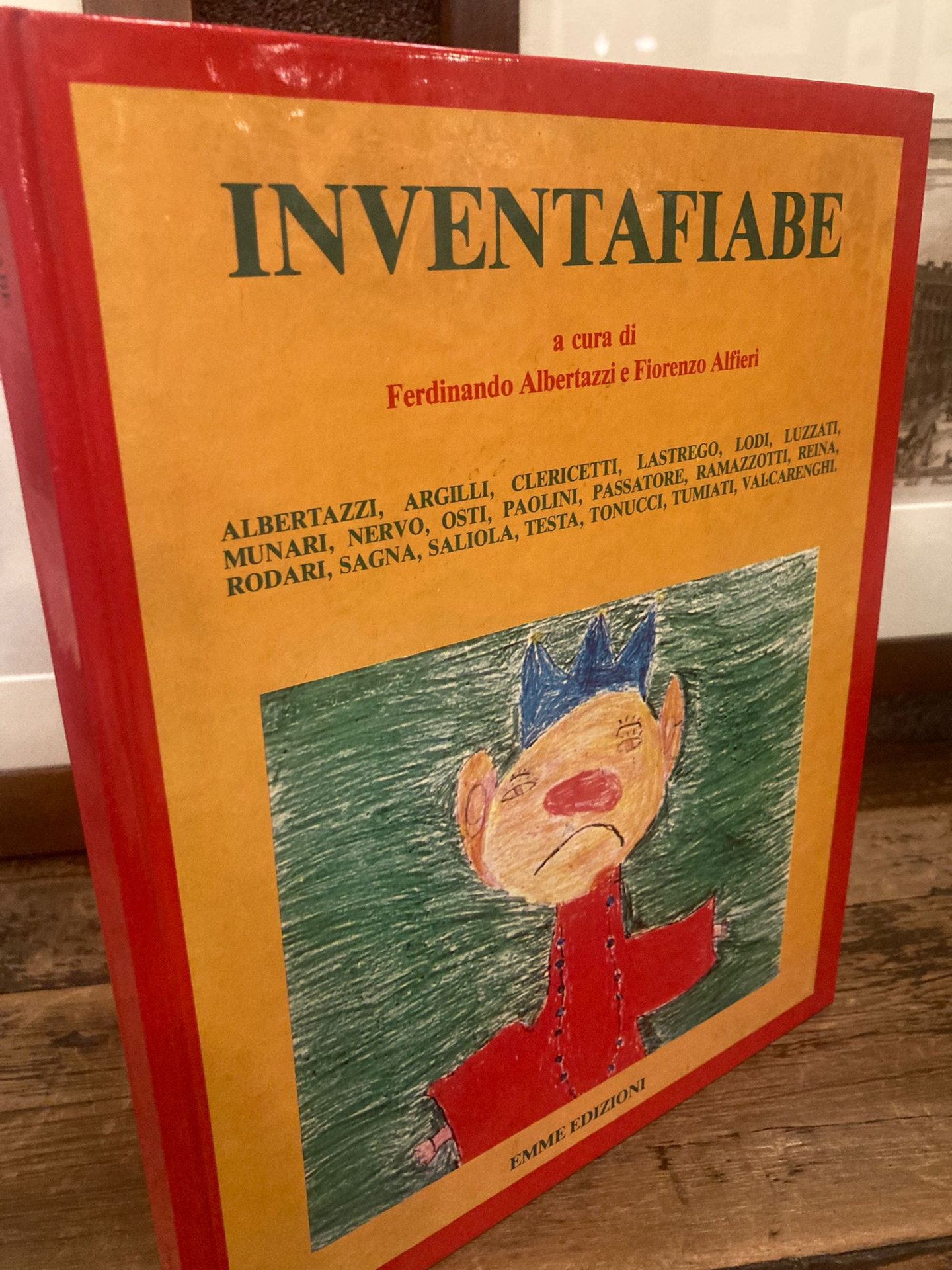 In-4° (30x24 cm), pp. 111 (1) bianca, cartonatura figurata a colori. Numerosissimi disegni e fotografie degli autori e dei bambini. Ottimo esemplare. Non comune edizione originale di questa raccolta di 24 fiabe inventate in laboratori di narrazione creativa da bambini delle scuole torinesi sotto la guida di scrittori ed artisti.