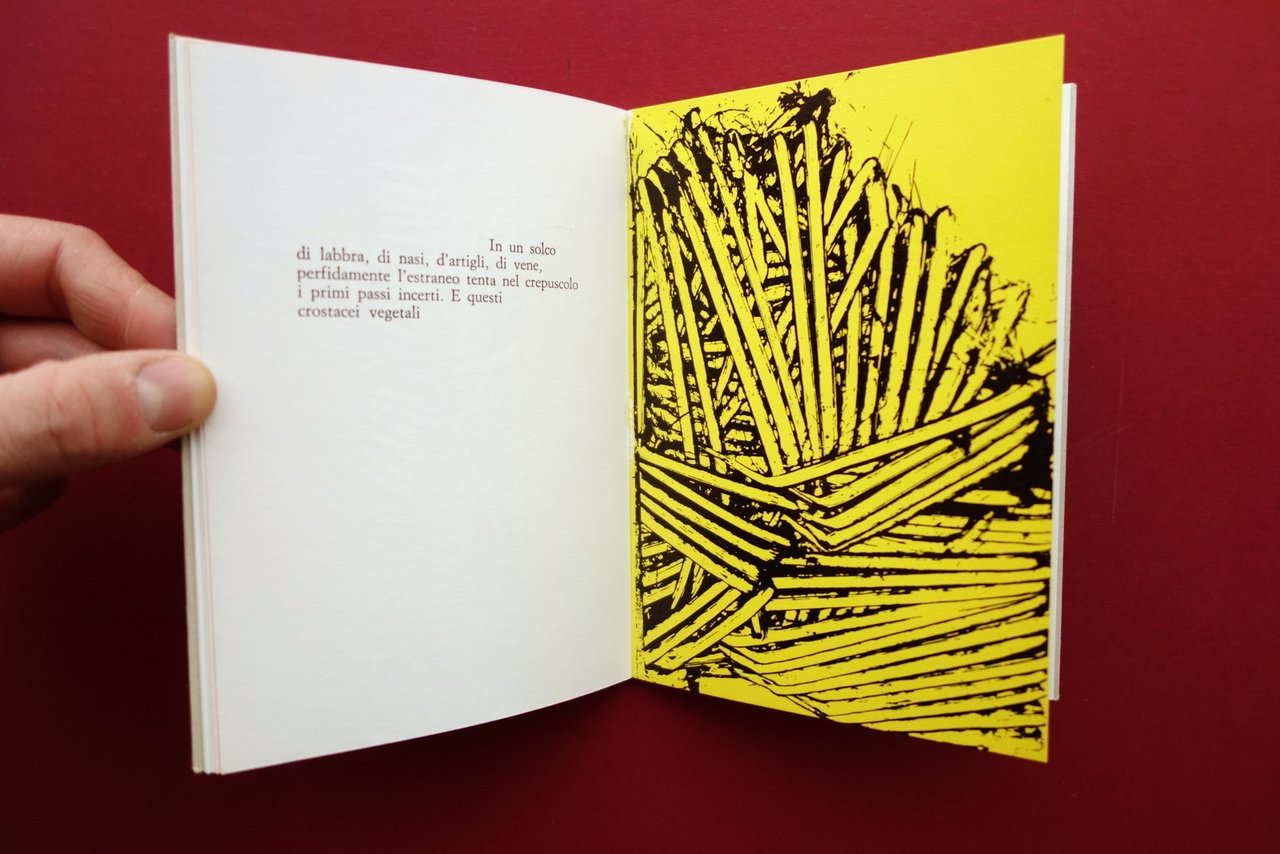 Roberto Sanesi, Ipotesi dell'Ospite Inatteso 5 immagini di Emilio Scanavino Ed. dell'Albero Poeta, Lecco, 1970; cm 17x12,5; pp. 24 non num. con 5 ill. a colori fuori t. di Emilio Scanavino (vedi foto); cartoncino ed. Esemplare in tiratura limitata di 1000 esemplari numerati, n/s 927. Condizioni di conservazione Esemplare in ottime condizioni con pochi minimi segni di utilizzo. Interni anch'essi ottimi. OPEB.5313 N