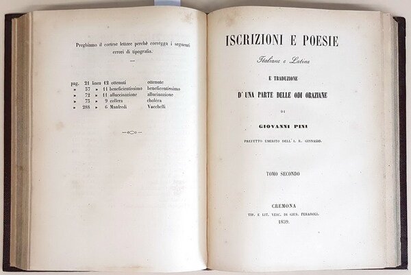 ISCRIZIONI E POESIE ITALIANE E LATINE e TRADUZIONE D'UNA PARTE DELLE ODI ORAZIANE di Giovanni Pini (tomi I, II e III)