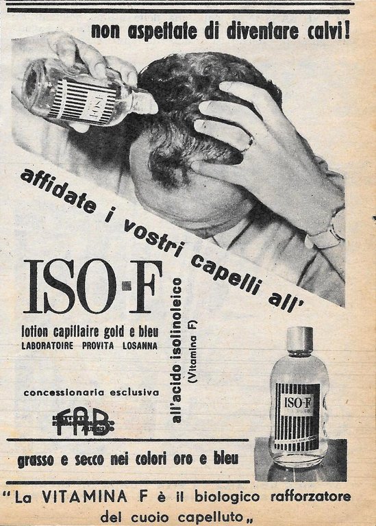 Iso-F non aspettate di diventare calvi!. Advertising 1956