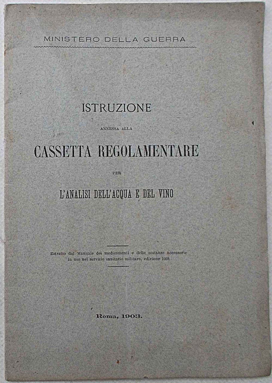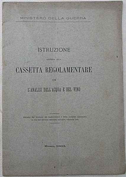Istruzione annessa alla cassetta regolamentare per l'analisi dell'acqua e del vino.